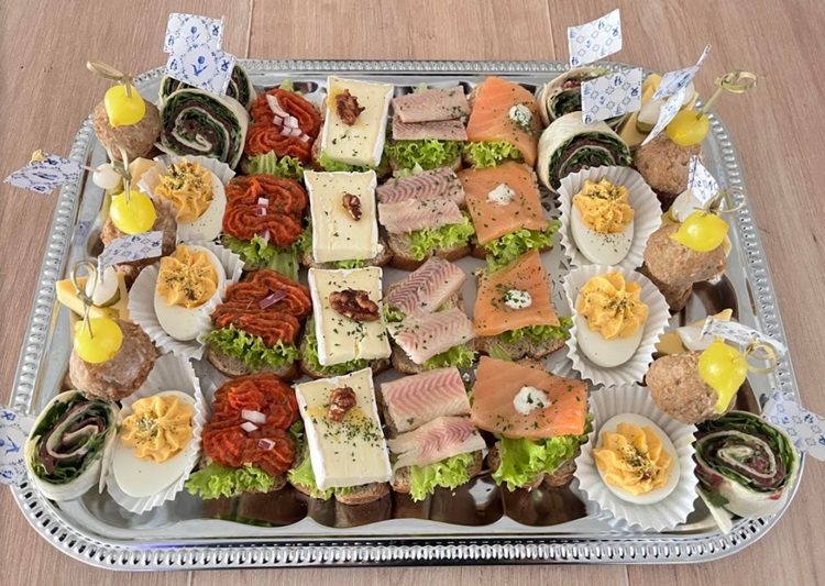 Te denken valt aan een pannetje soep, stokbroodje, smeersels, stukje kaas, komkommer, tomaatjes, salade, toastje, gevulde wraprolletjes, eitje, hartig taartje, gehaktballetjes, enz. In een hoeveelheid die je zelf op kunt.